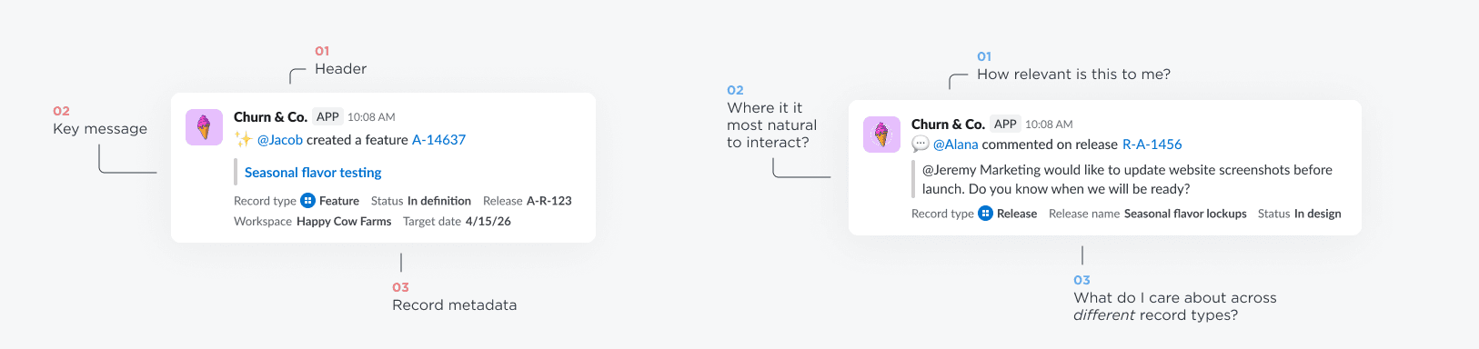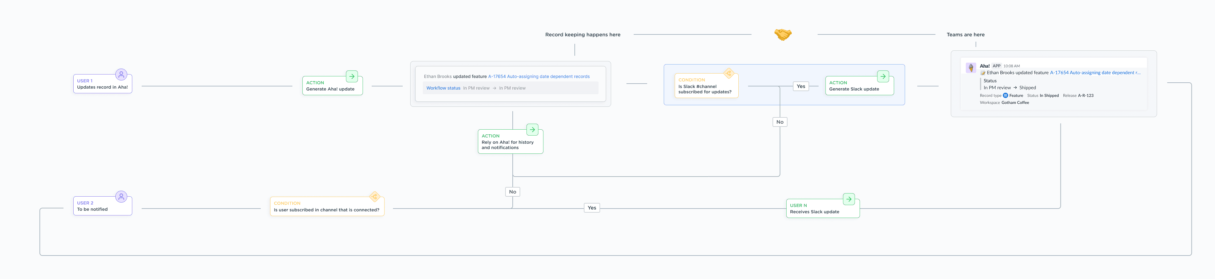 Aha!’s notifications weren’t doing the job. A full rebuild wasn’t in scope. Slack had become where teams actually paid attention, so we made a strategic decision to meet them there.