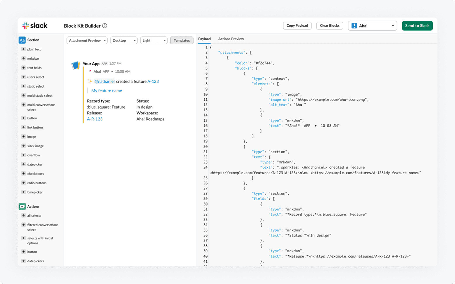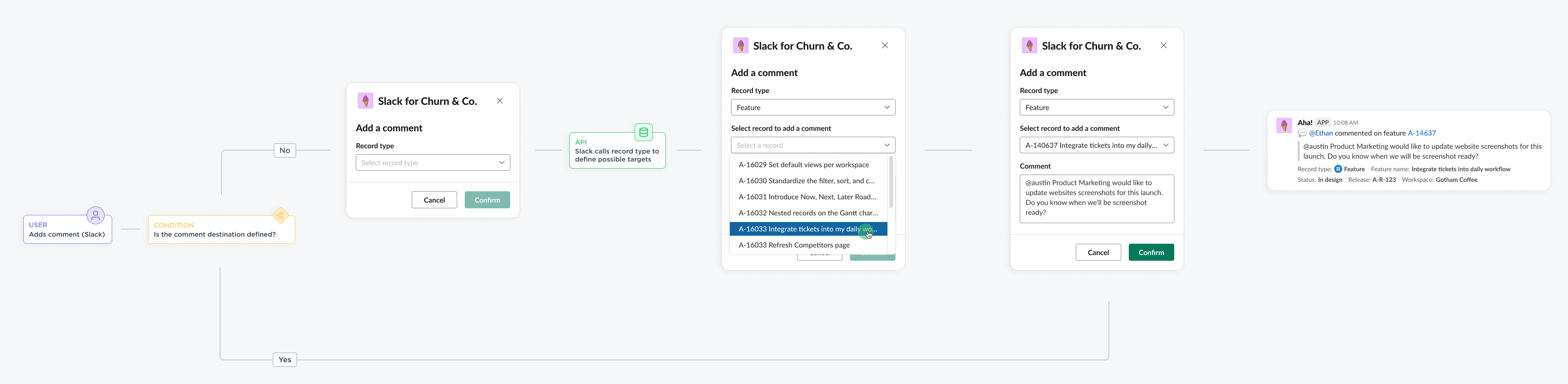 We mapped Slack interactions right to Aha! records so context stays attached to the work.